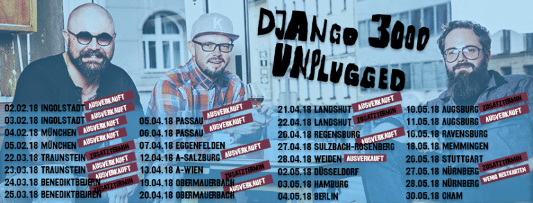 Die Folk-Popband Django 3000 bestehend aus den Musikern Kamil Müller Gesang, Gitarre; Florian R. Starflinger Geige, Gitarre, Gesang; und Jan-Philipp Wiesmann Schlagzeug, Gesang; hat wie schon im Jahr 2016 auch im vergangenen Jahr auf ihren sehr erfolgreichen Konzerten, die als bayerischer „Balkan Beat“ bezeichnet werden, Geld gesammelt, um es dem Verein YEHUDI MENUHIN Live Music Now (LMN) zukommen zu lassen. Zwei von ihnen, Florian R. Starflinger und Jan-Philipp Wiesmann wurden während ihres Studiums von LMN unterstützt und gefördert und freuen sich darüber mit dieser Gabe etwas zurück geben zu können. Sie sind sicher, dass es ihnen ohne die Förderung durch LMN nicht möglich gewesen wäre, als Band zusammen zu bleiben. Das macht sie dankbar. Sie bieten daher zusätzlich zu den Geldspenden an, unentgeltlich in Gefängnissen zu konzertieren. Die Mitglieder von LMN sind sprachlos, ob dieser Großzügigkeit, bedanken sich sehr herzlich über diese zur Nachahmung empfohlene neuerliche deutlich höhere Zuwendung durch ihre früheren Stipendiaten und sehen in den Handlungen der begabten Musiker eine Bestätigung ihrer eigenen Bemühungen.